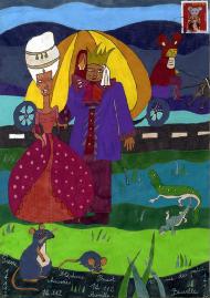 - Glissez cette petite carte ainsi illustrée dans le porte-photos de 48 cases mis à votre disposition. Votre oeuvre constituera avec les autres créations une mosaïque d'Art postal.