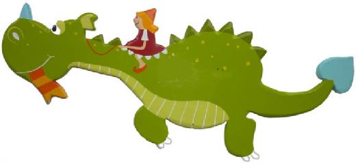 Bois peint : Fillette sur dragon (50cm)