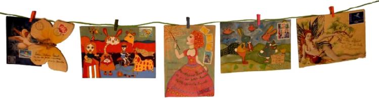 Cinq des dix enveloppes illustrées à la main (Activité Art postal)